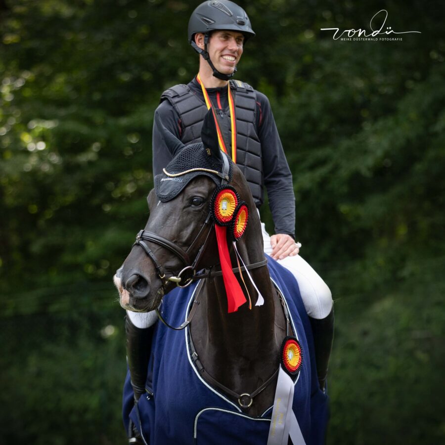 Auch der Besitzer von Polaris, ebenfalls vorgestellt von Jerome Robine, Michael Schneider war vor Ort um seinen Trakehner anzufeuern und sich mit Züchterfamilie Eppers zu freuen. Mit tollen Runden konnte auch Polaris sich einen Platz unter den Top Ten der fünfjährigen Vielseitigkeitspferde bundesweit sichern! Herzlichen Glückwunsch!